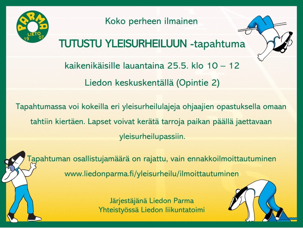 Koko perheen ilmainen tutustu yleisurheiluun -tapahtuma 25.5.